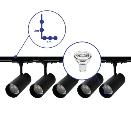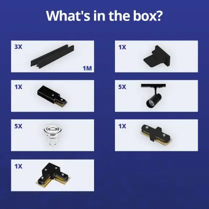 | Manufacturer Name | Complete L shaped 1-Phase Track Set Black incl. 5x Spot fixture + GU10 2700K 3W Dim – 1 x 2 meter i | |