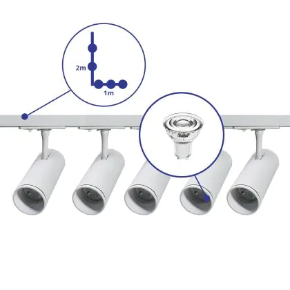 Bright Choice Complete Set 1-Phase Rail L 1 x 2 Meter White | incl. 5x Spot + GU10 2700K 3W Dimmable + End Cap, Power Connector and L -Connector