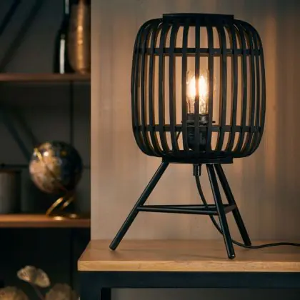 Brilliant Table Lamp Woodrow Metal Bamboo Black Wood | Suitable for 1x E27