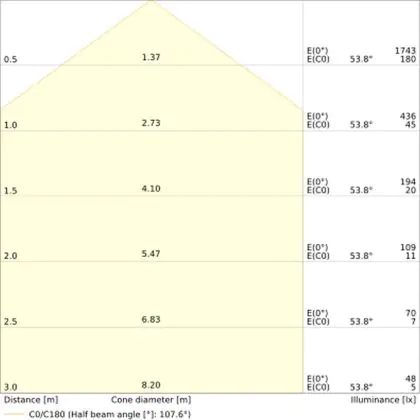 ![]() The colour code is a combination of colour rendering (CRI) and light colour (Kelvin). The first number indicates the colour rendering (1 = very poor colour rendering, 9 = maximum colour fastness). The second and third number contains the light colour. Example: the colour code 830 consists of good colour rendering (8) and warm white light (3000K). |