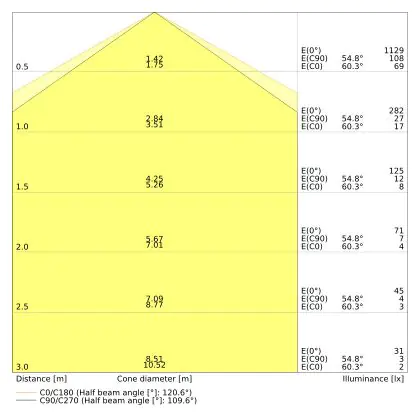 The number of lumens (lm) is the light output of a light source. The higher the number of lumens, the more light the light source emits. The wattage and the number of lumens are not connected to each other. An LED lamp with a low wattage can have a higher number of lumens than a conventional lamp with a high wattage.