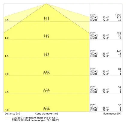 ![]() The colour code is a combination of colour rendering (CRI) and light colour (Kelvin). The first number indicates the colour rendering (1 = very poor colour rendering, 9 = maximum colour fastness). The second and third number contains the light colour. Example: the colour code 830 consists of good colour rendering (8) and warm white light (3000K). |