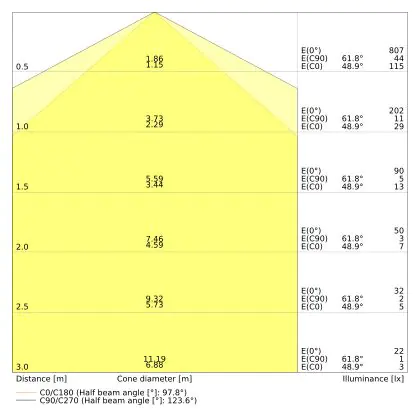 ![]() The colour code is a combination of colour rendering (CRI) and light colour (Kelvin). The first number indicates the colour rendering (1 = very poor colour rendering, 9 = maximum colour fastness). The second and third number contains the light colour. Example: the colour code 830 consists of good colour rendering (8) and warm white light (3000K). |