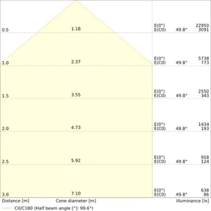 A beam angle indicates the angle of the light beam coming from a light source. The smaller the radiation angle in degrees (D), the narrower the beam angle.