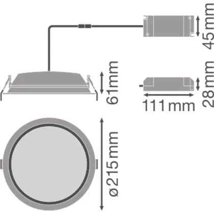Description Ledvance LED Downlight Alu DN200 35W 2975lm 100D - 830 Warm White | 215mm - IP44
