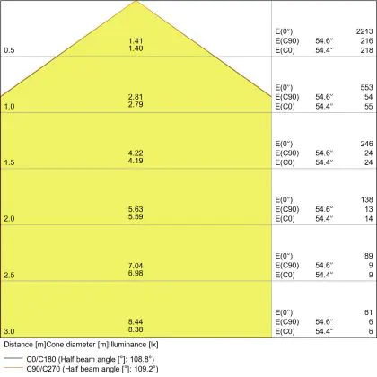 Beam angle of 120°