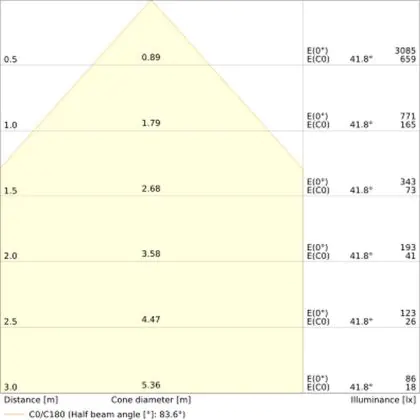 ![]() The colour code is a combination of colour rendering (CRI) and light colour (Kelvin). The first number indicates the colour rendering (1 = very poor colour rendering, 9 = maximum colour fastness). The second and third number contains the light colour. Example: the colour code 830 consists of good colour rendering (8) and warm white light (3000K). |
