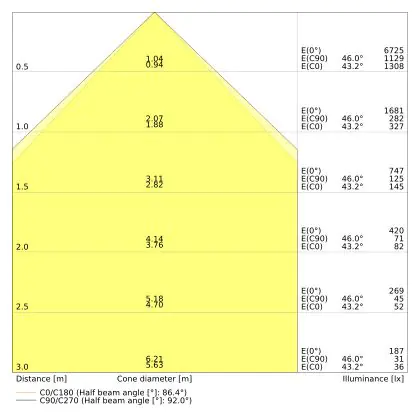 ![]() The colour code is a combination of colour rendering (CRI) and light colour (Kelvin). The first number indicates the colour rendering (1 = very poor colour rendering, 9 = maximum colour fastness). The second and third number contains the light colour. Example: the colour code 830 consists of good colour rendering (8) and warm white light (3000K). |