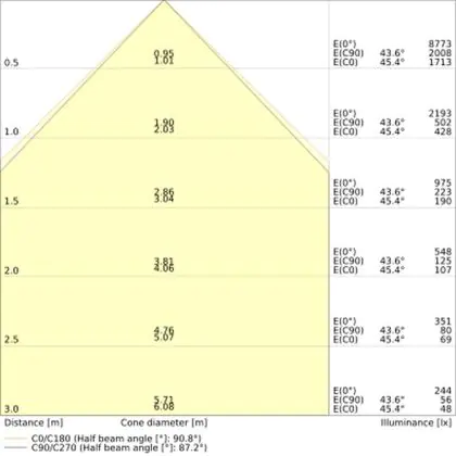 ![]() The colour code is a combination of colour rendering (CRI) and light colour (Kelvin). The first number indicates the colour rendering (1 = very poor colour rendering, 9 = maximum colour fastness). The second and third number contains the light colour. Example: the colour code 830 consists of good colour rendering (8) and warm white light (3000K). |