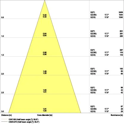 ![]() The colour code is a combination of colour rendering (CRI) and light colour (Kelvin). The first number indicates the colour rendering (1 = very poor colour rendering, 9 = maximum colour fastness). The second and third number contains the light colour. Example: the colour code 830 consists of good colour rendering (8) and warm white light (3000K). |