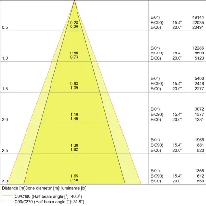 A beam angle indicates the angle of the light beam coming from a light source. The smaller the radiation angle in degrees (D), the narrower the beam angle.