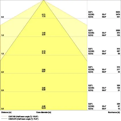 ![]() The colour code is a combination of colour rendering (CRI) and light colour (Kelvin). The first number indicates the colour rendering (1 = very poor colour rendering, 9 = maximum colour fastness). The second and third number contains the light colour. Example: the colour code 830 consists of good colour rendering (8) and warm white light (3000K). |