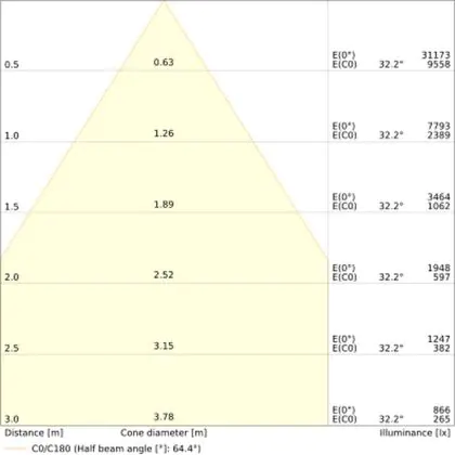 A beam angle indicates the angle of the light beam coming from a light source. The smaller the radiation angle in degrees (D), the narrower the beam angle.