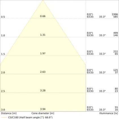 A beam angle indicates the angle of the light beam coming from a light source. The smaller the radiation angle in degrees (D), the narrower the beam angle.