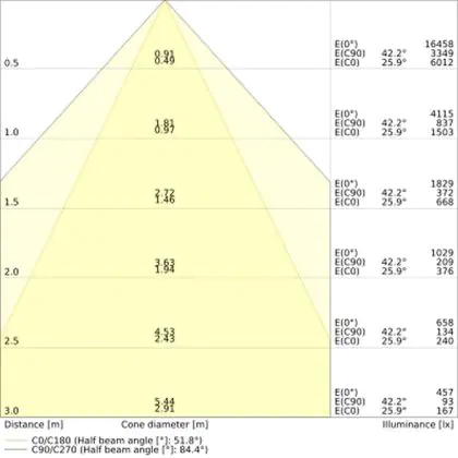 ![]() The colour code is a combination of colour rendering (CRI) and light colour (Kelvin). The first number indicates the colour rendering (1 = very poor colour rendering, 9 = maximum colour fastness). The second and third number contains the light colour. Example: the colour code 830 consists of good colour rendering (8) and warm white light (3000K). |