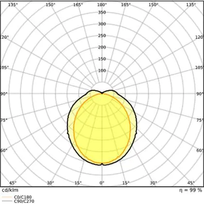 The Luminous Efficacy (lm/W) indicates how efficiently a light source uses energy. We divide the number of lumens by the wattage. The higher the number, the more efficient a product is in terms of energy consumption. LED lighting has a considerably higher lumen/Watt ratio than conventional lighting.