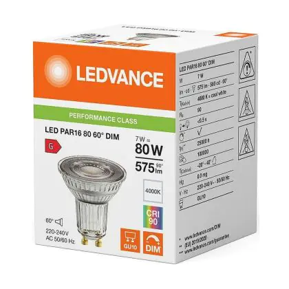 Multipack 10x Ledvance LED PAR16 GU10 Reflector 7W 575lm 60D - 940 Cool White | Best Colour Rendering - Dimmable - Replaces 80W