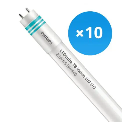 Multipack 10x Philips LED Tube T8 MASTER Value (UN) Ultra Output 23W 3700lm - 840 Cool White | 150cm - Replaces 58W