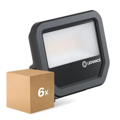 Multipack 6x Ledvance LED Floodlight Aluminium Black 17W 2200lm 100D - 830 Warm White | IP66 - Symmetrical