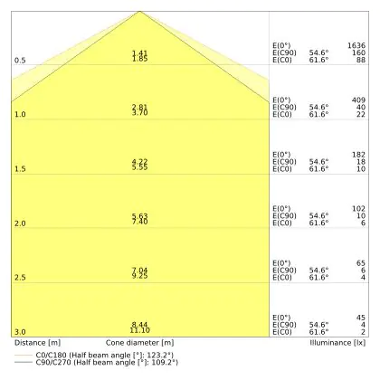 ![]() The colour code is a combination of colour rendering (CRI) and light colour (Kelvin). The first number indicates the colour rendering (1 = very poor colour rendering, 9 = maximum colour fastness). The second and third number contains the light colour. Example: the colour code 830 consists of good colour rendering (8) and warm white light (3000K). |