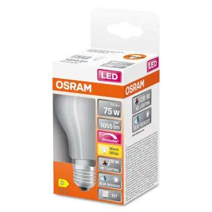 Osram LED Superstar E27 Pear Filament Frosted 7.5W 1055lm - 927 Extra Warm White | Best Colour Rendering - Dimmable - Replaces 75W