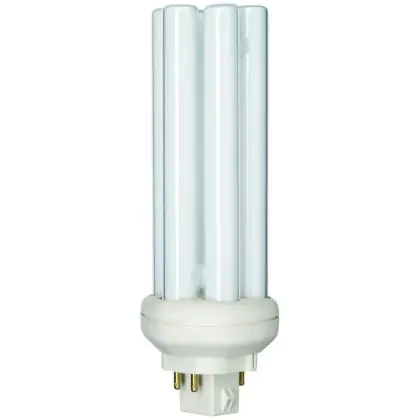 The Philips PL-T 4P lamps are 4 pin sockets lamps and are made of 6 tubes. They are compact fluorescent lamps with separate power supplies. They are very energy efficient and must be used with a conventional ballast. With their GX24q-3 socket, Philips PL-T 32W 840 4P easily integrate into light fixtures.